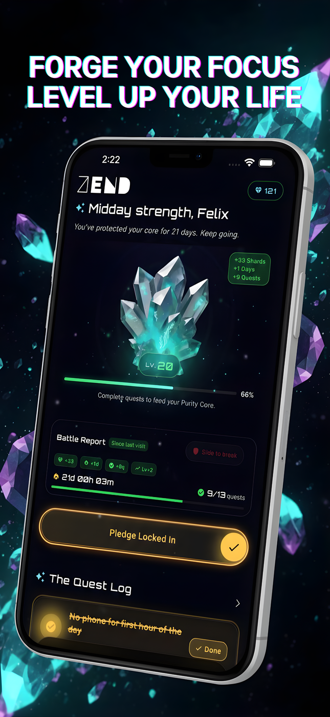 Zend is the gamified recovery app that helps you quit gaming addiction using Apple Screen Time, XP tracking, and community support.